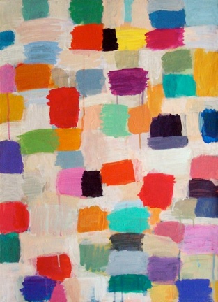 Dachten wir zuerst noch an die chromatischen Scheiben des Malers E. W. Nay, so erkennen wir im nächsten Moment, dass es hier noch andere Vorbilder aus der zeitgenössischen Kunst geben muss. Die Materialität dieser Bilder hat etwas flüchtiges, der Farbauftrag erfolgt offenbar so naß, dass Farbnasen belassen und damit zu einem zusätzlichen ästhetischen Reiz werden, dem Pinselduktus eignet zuweilen
